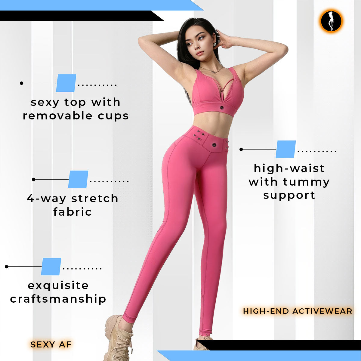 This arresting activewear set combines high-end, ultra-soft fabrics with advanced moisture-wicking technology for a modern and sexy look. Whether you're sweating it out in the gym or out for a run, you can stay cool and dry in this stylish activewear.